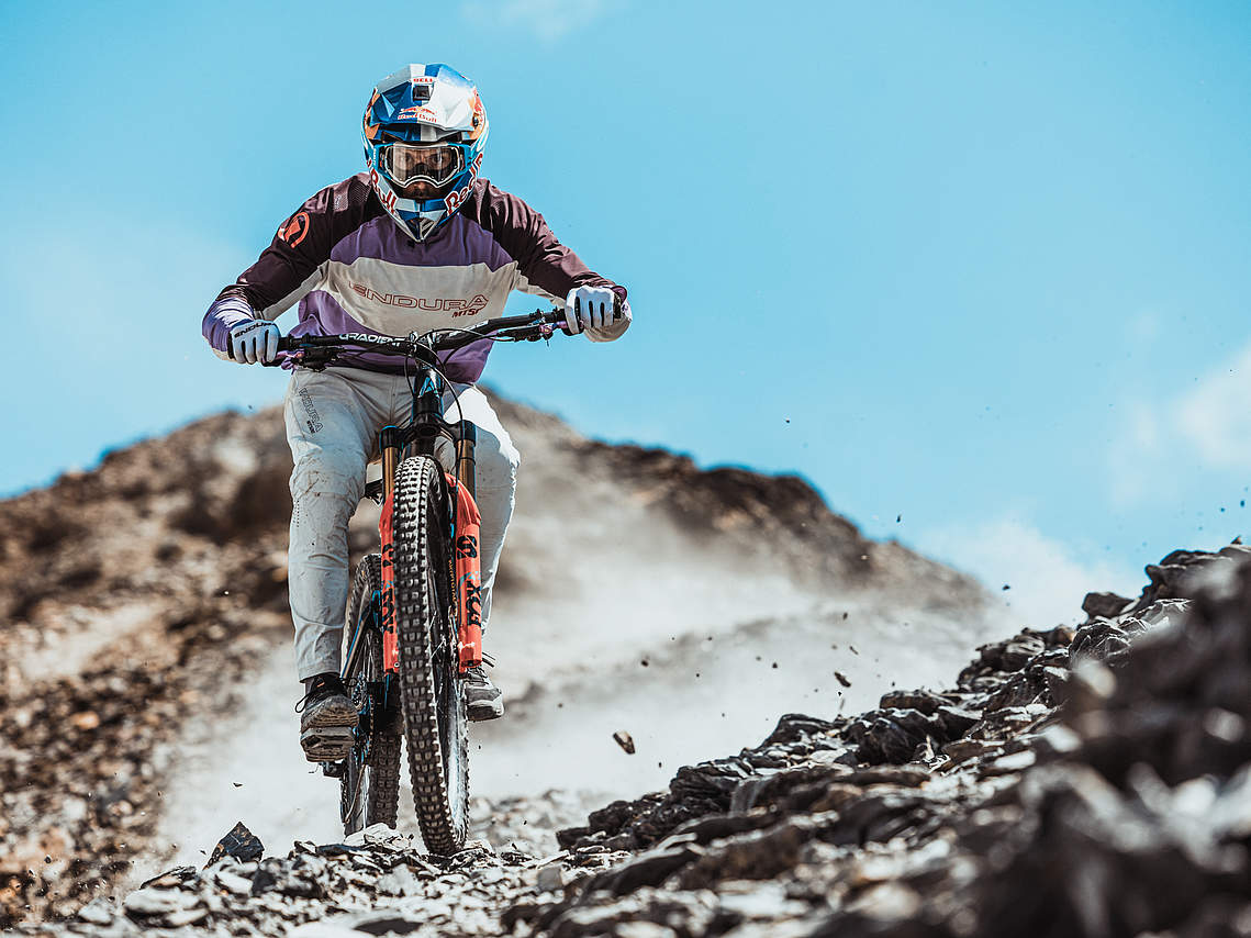 Gee Atherton: "The thing that stood out to me the most was the contrast. One moment, you’re in this beautiful, relaxed little village, and a short ride on the lift later, you’re up on these huge, exposed mountains with sharp rocks and steep sides. You go from a safe, comfortable environment to something that fills you with fear really fast. You have to change your mindset really quickly. And then, the other way around—you can be on top of a mountain, and then suddenly you’re back in the village, having a glass of wine and enjoying a steak. I loved how quickly it shifted between those two extremes."