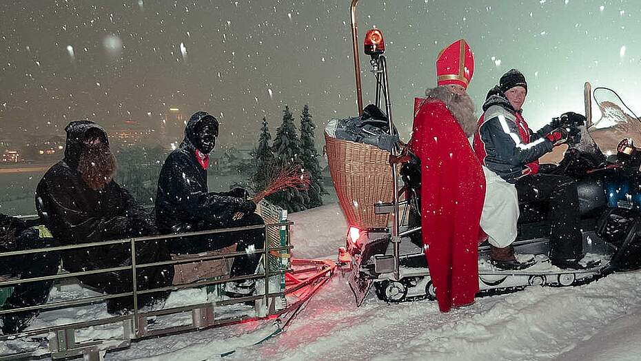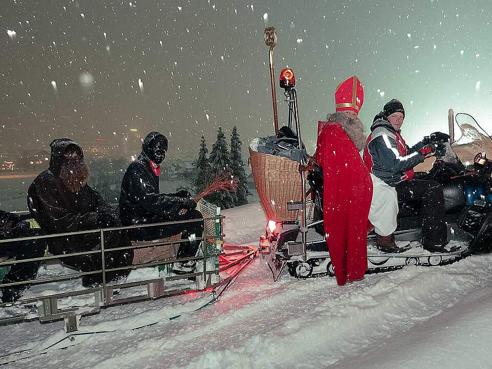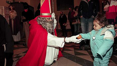 Das helle klingen der Rollen, welche der Schmutzli um seinen Bauch trägt, ist das untrügliche Zeichen dafür, dass der Samichlaus im Anmarsch ist. Das Herz der Kinder beginnt schneller zu schlagen. Und auch wenn sie es nicht zugeben – die Aufregung wird von Sekunde zu Sekunde grösser. Was wohl im goldenen Buch steht? Fragen über Fragen jagen sich in diesem Augenblick in den Köpfen der Kinder. Es pocht an die Haustüre. Dies ist der Moment, wo auch die Vorwitzigsten still und stiller werden. Und dann stehen sie da im Wohnzimmer. Der Mann mit dem langen, weiss-grauen Bart im Bischofsgewand mit seinen beiden Helfern. Der Ruprecht mit seinem struppigen Bart hat als Schutz gegen die Kälte draussen eine braune Kutte angezogen. Geheimnisvoll ist der Schmutzli. Nur das Weiss seiner Augen ist in seinem schwarzen Gesicht auszumachen. Ein ungleiches Trio auf den ersten Blick. Doch sie bilden ein starkes Team und unterstützen einander wo sie nur können.