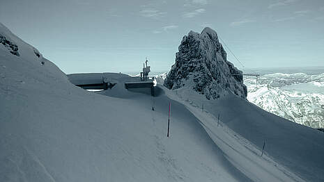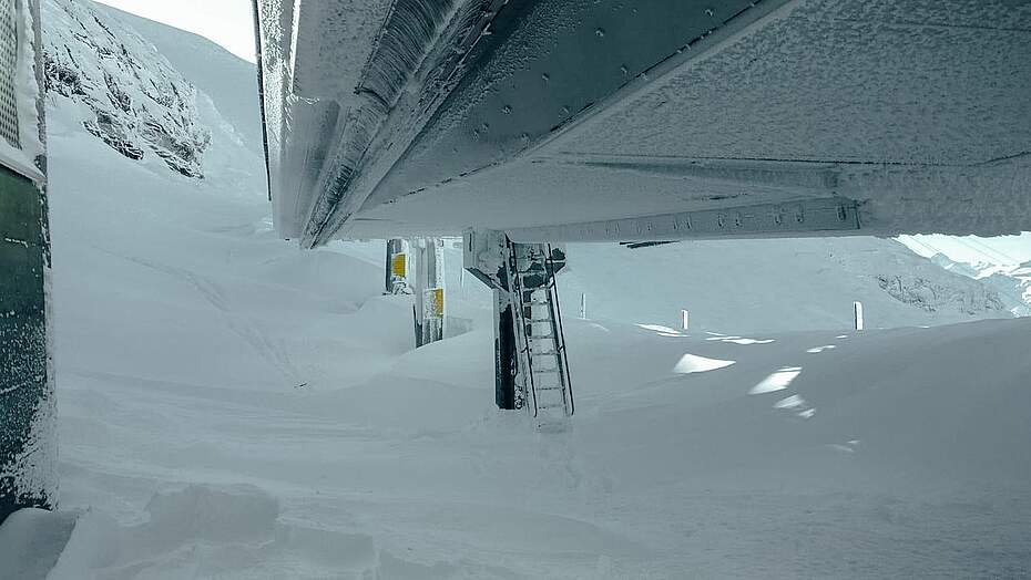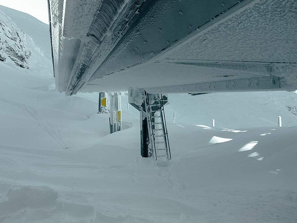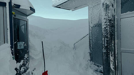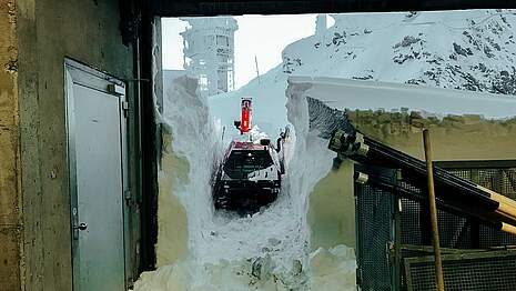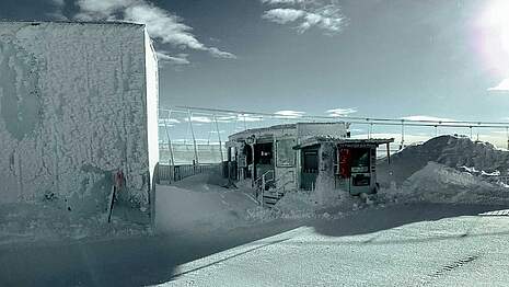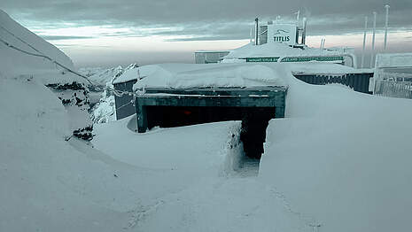 Auf dem Titlis ist innerhalb von zwei Wochen so viel Schnee gefallen wie noch nie seit Beginn der automatischen Schneemessung vor 25 Jahren. Dies errechnete das Institut für Schnee- und Lawinenforschung für die Obwaldner Zeitung. Kein Wunder also, sind die Mitarbeiter auf dem Titlis fast im Schnee – und damit in haufenweise Räumungsarbeiten versunken.