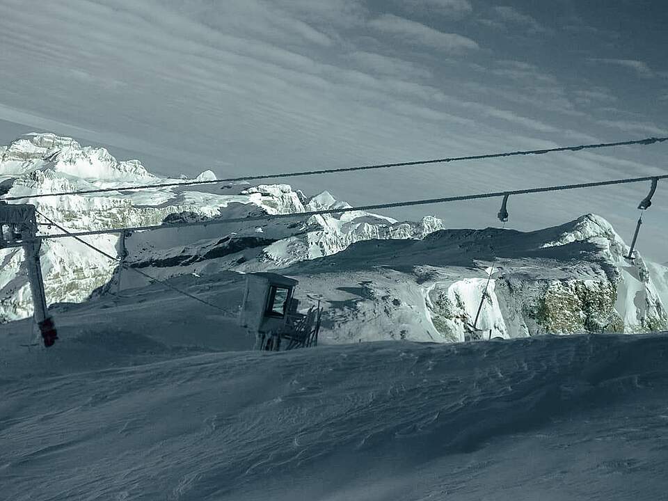 Und weil's so eindrücklich ist, hier gleich noch mehr Aufnahmen vom Titlis, wo inzwischen fünf Meter Schnee liegen. Seit Mittwoch sind die Anlagen und Pisten auf dem Gletscher übrigens wieder offen. Wie auf allen Pisten von Engelberg gilt auch hier: Pulver gut!